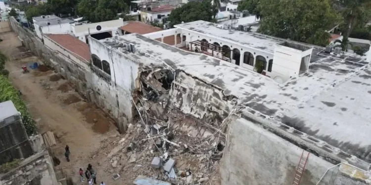 Las excavaciones realizadas en la edificación que se levanta, de acuerdo a las evaluaciones preliminares provocaron que una parte de la estructura del salón de actos, Julio Ravelo de la Fuente se derrumbara, dado que el edificio colonial, data de más de quinientos años.