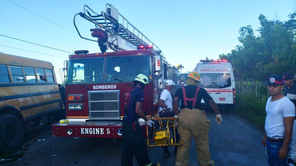 Verón.- de septiembre de 2023, – Un lamentable accidente de tránsito ha sacudido la localidad de Verón en las primeras horas del día de hoy. Dos autobuses de transporte de personal chocaron frontalmente en la carretera La Otra Banda, dejando como saldo tres personas fallecidas y 11 heridas, que han sido trasladadas a centros hospitalarios cercanos.