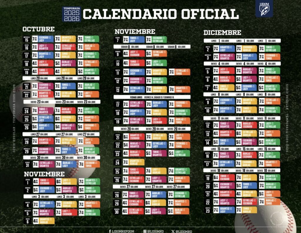 Santo Domingo.- El país vuelve a vibrar al ritmo del béisbol. Este miércoles 15 de octubre, los fanáticos dominicanos se preparan para una noche que huele a maní, ron y gloria deportiva. La Liga de Béisbol Profesional de la República Dominicana (LIDOM) sube el telón de la temporada 2025-2026, y el ambiente no puede ser más eléctrico. En cada esquina, en cada colmadón, se respira una sola consigna: “arrancó la pelota”.