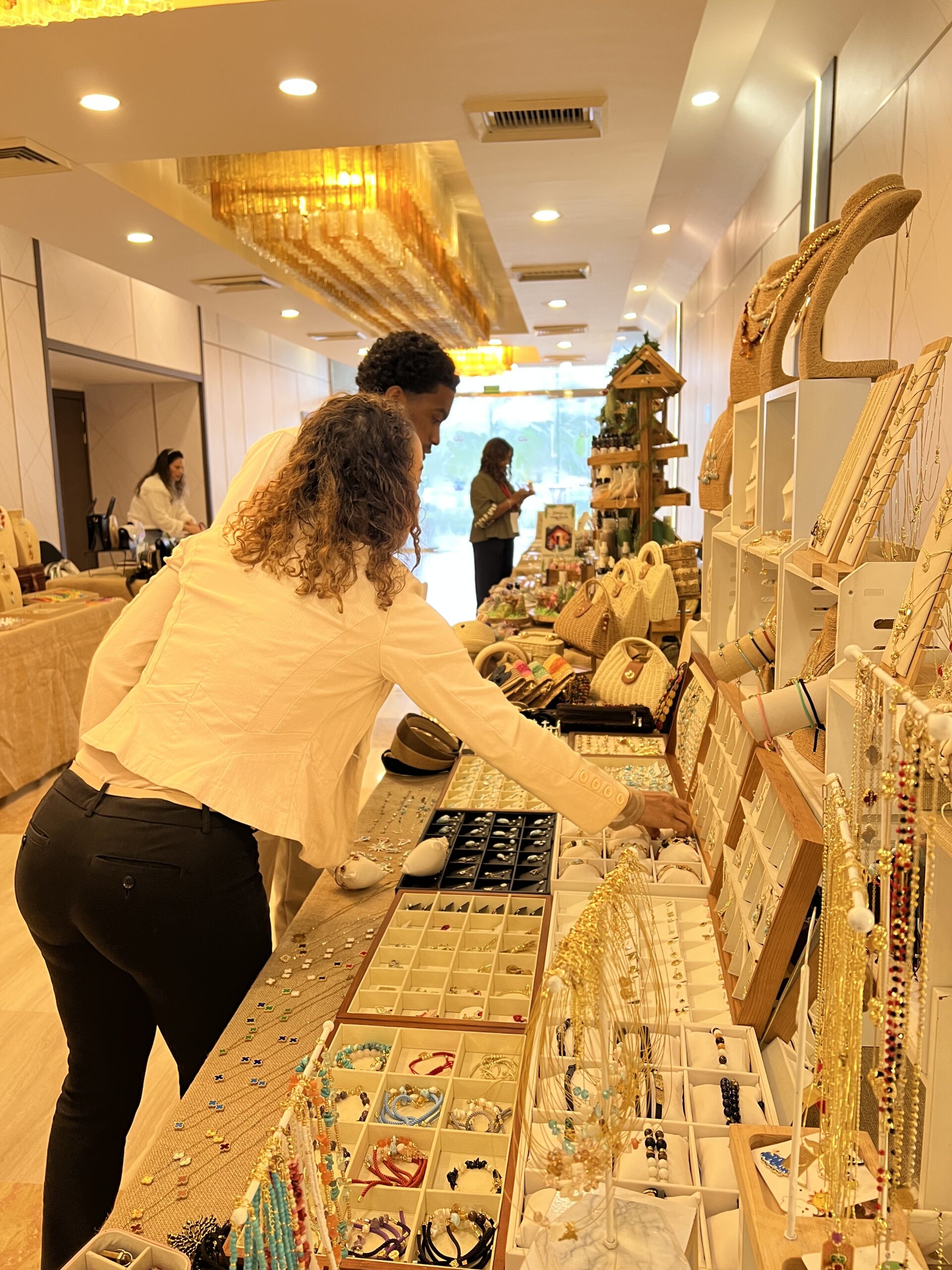 En uno de los salones principales, los visitantes pueden apreciar una amplia variedad de artículos elaborados con materiales naturales, como madera, barro, ámbar, larimar y fibras vegetales.