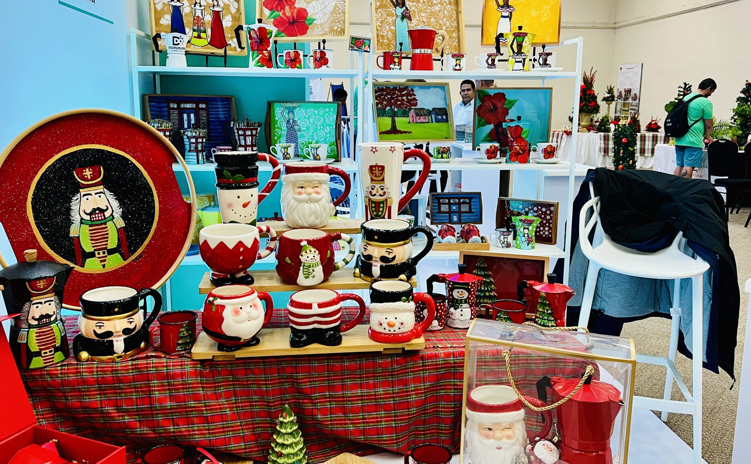 En uno de los salones principales, los visitantes pueden apreciar una amplia variedad de artículos elaborados con materiales naturales, como madera, barro, ámbar, larimar y fibras vegetales.