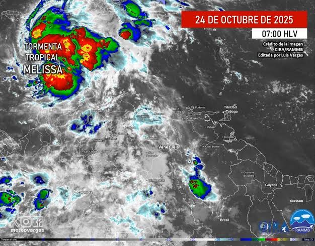 Santo Domingo Este, República Dominicana. — La tormenta tropical Melissa continúa intensificándose sobre el Caribe y podría convertirse en huracán este sábado, según el más reciente boletín del Instituto Dominicano de Meteorología (INDOMET) emitido a las 7:00 de la noche de este viernes 24 de octubre.