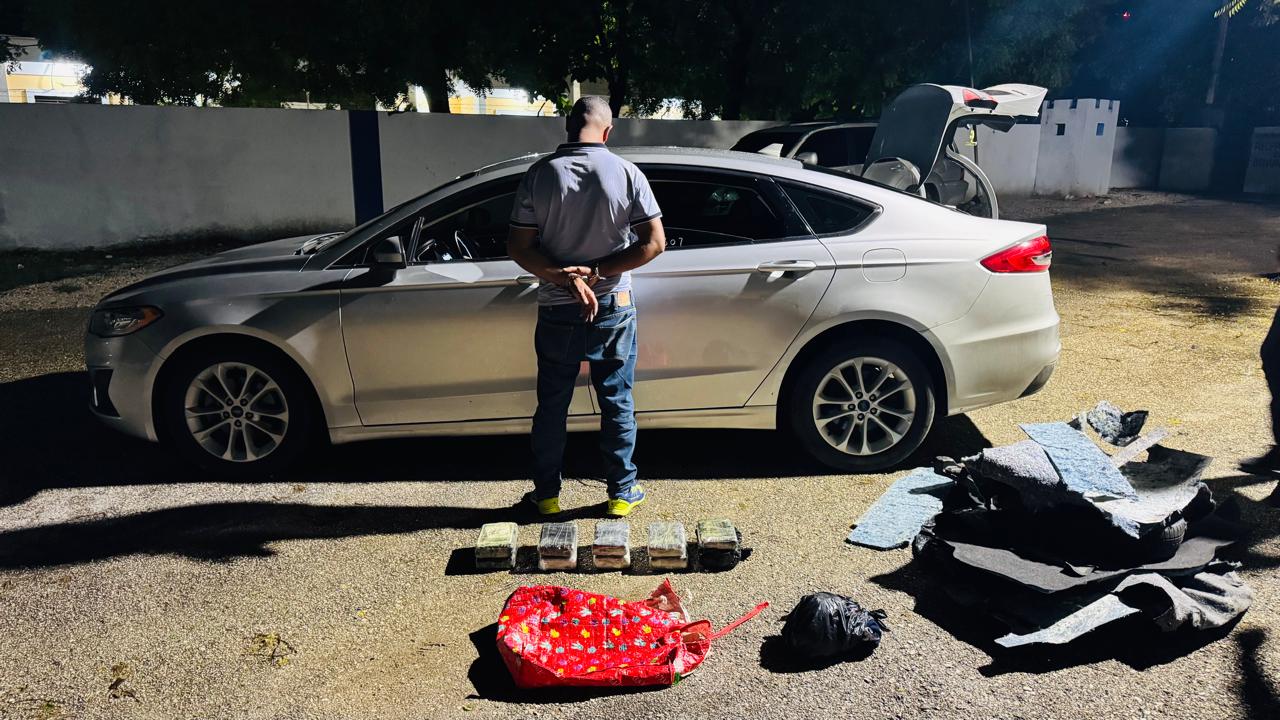 Santo Domingo. Las autoridades dieron un golpe contundente al narcotráfico en la región Sur. Oficiales de la Dirección Nacional de Control de Drogas (DNCD) y miembros del Ministerio Público, en coordinación con la Policía Nacional, interceptaron a un hombre en Barahona a bordo de un vehículo que transportaba diez paquetes de presunta cocaína, con un peso total superior a los diez mil gramos.