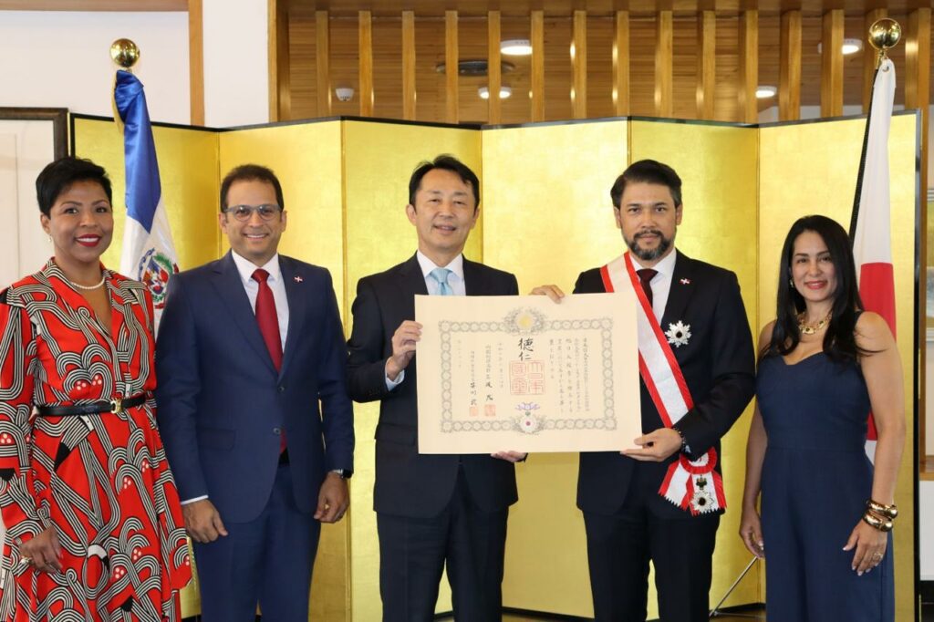 Brasilia, 27 de octubre de 2025.– El Gobierno del Japón, en nombre de Su Majestad el Emperador Naruhito, ha conferido al Embajador Extraordinario y Plenipotenciario de la República Dominicana en Brasil, Robert Takata Pimentel, la Orden del Sol Naciente, Gran Cordón (Grand Cordon of the Order of the Rising Sun), la más alta distinción que Japón concede habitualmente a diplomáticos extranjeros.