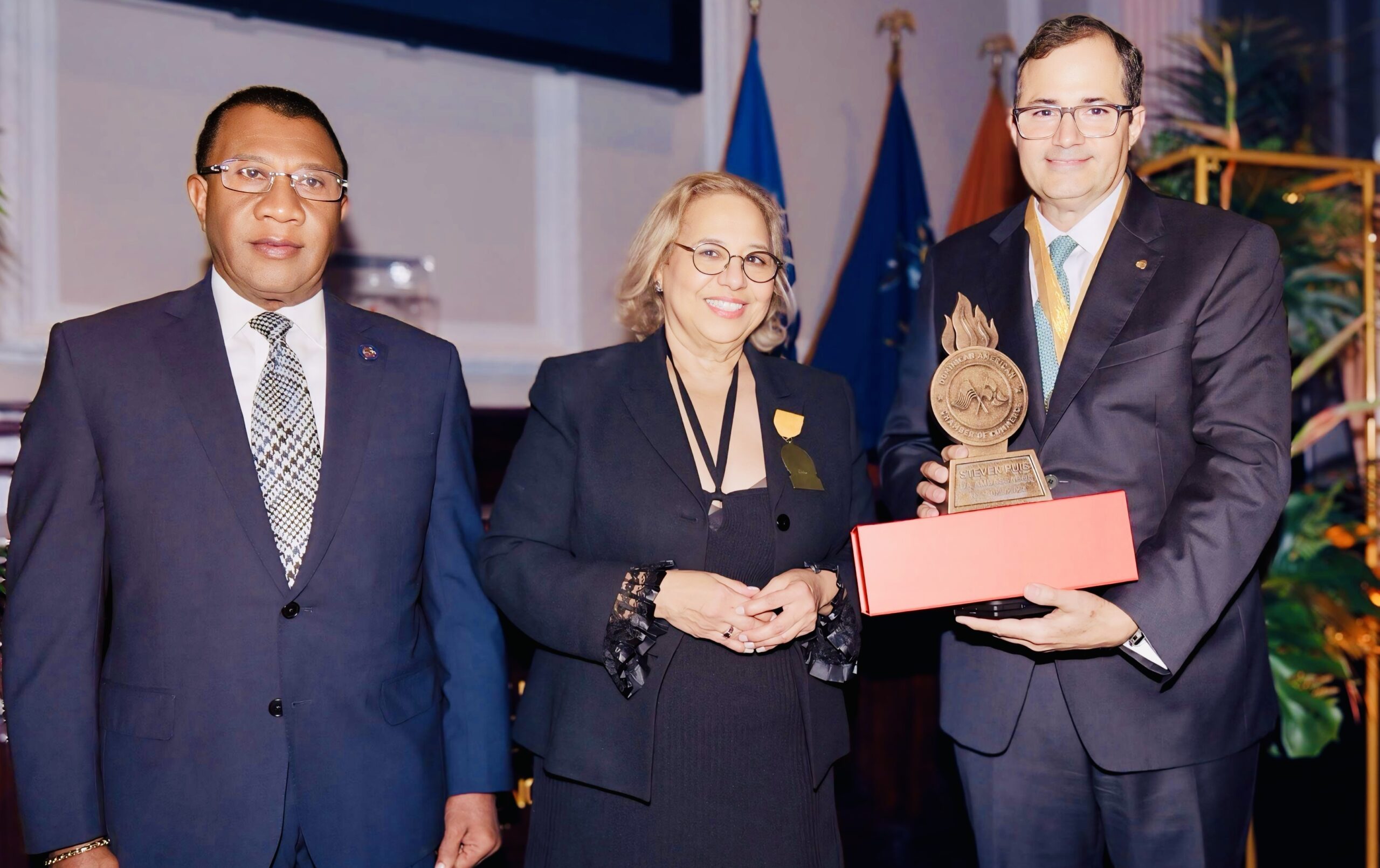 “Este reconocimiento honra su invaluable trayectoria y su encomiable labor para fortalecer las relaciones comerciales domínico-americanas y generar bienestar entre los dominicanos dentro y fuera del país, mediante una banca segura, responsable y humana”, expresó la directiva de la Cámara durante el acto de entrega.