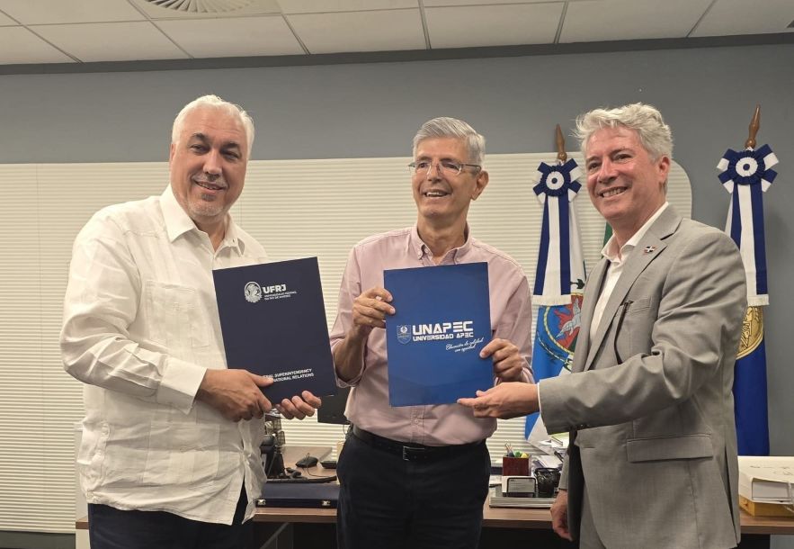 El compromiso fue firmado por el profesor Roberto Medronho, rector de la UFRJ, y el doctor Erik F. Pérez Vega, rector de UNAPEC, en un acto que promete ampliar significativamente la proyección internacional de la academia dominicana.