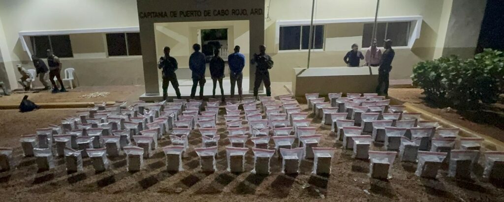 La lancha fue finalmente interceptada a varias millas náuticas al sur de Isla Beata. Las autoridades lograron detener a tres hombres y asegurar 24 pacas que contenían los 806 paquetes del alijo.