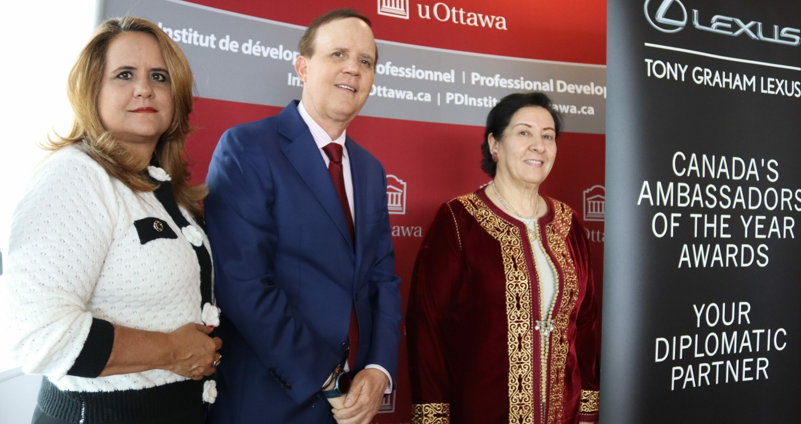 La ceremonia se celebró en la Facultad del Professional Development Institute, durante los Canada’s Ambassadors of the Year Awards 2025. La embajadora de Marruecos y decana del Cuerpo Diplomático, Souriya Otmani, encabezó el acto y destacó la trayectoria del homenajeado. Dijo sentirse orgullosa de entregarle un reconocimiento que, según sus palabras, celebra su aporte a la diplomacia pública internacional y su vínculo con la Universidad de Ottawa, donde cursó estudios de Derecho.